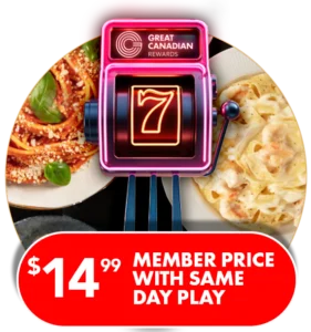 Available at Great Blue Heron Casino, Shorelines Casino Belleville, and Elements Casino Mohawk exclusively for Great Canadian Rewards members.