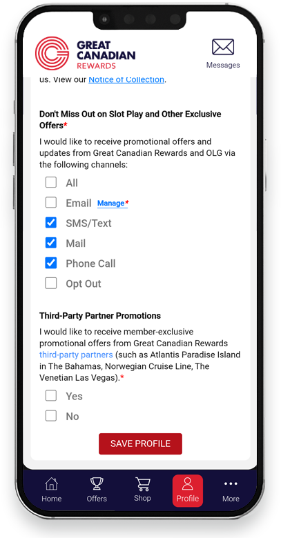 To opt in to receiving third-party communications, log in to the Member Portal and go to the My Profile tab. Scroll to Communication Preferences and select Yes for third-party promotional offers. Accept the terms, click Confirm and Agree, and then select Save Profile to apply your changes. Please ensure that your account has a valid email address or phone number on file.