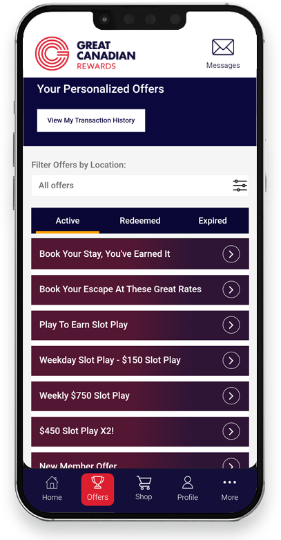 Visit any Great Canadian Rewards destination and insert your rewards card into a slot machine