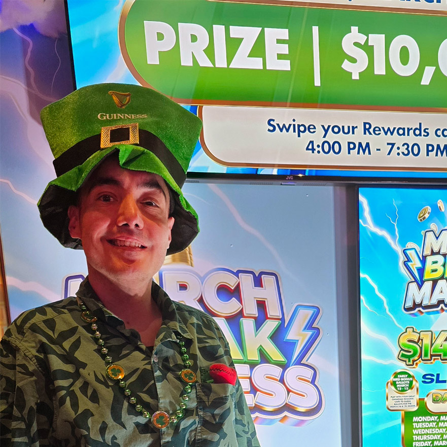 **PARTICIPANTS MUST PLAY USING THEIR GREAT CANADIAN REWARDS CARD TO BE ELIGIBLE FOR ANY BONUS BALLOTS BETWEEN MARCH 13 AND MARCH 20, 2026. GREAT CANADIAN REWARDS RESERVES THE RIGHT TO MODIFY OR CANCEL THIS PROMOTION AT ANY TIME WITHOUT NOTICE. MUST BE 19 YEARS OF AGE OR OLDER. AVAILABLE EXCLUSIVELY TO GREAT CANADIAN REWARDS MEMBERS. PARTICIPANTS MUST NOT BE SELF-EXCLUDED OR BANNED FROM GREAT CANADIAN ENTERTAINMENT DESTINATIONS. ADDITIONAL TERMS AND CONDITIONS APPLY. VISIT GUEST SERVICES FOR FULL RULES AND REGULATIONS. LEARN MORE IN OUR RESPONSIBLE GAMBLING STATEMENT OF COMMITMENT.